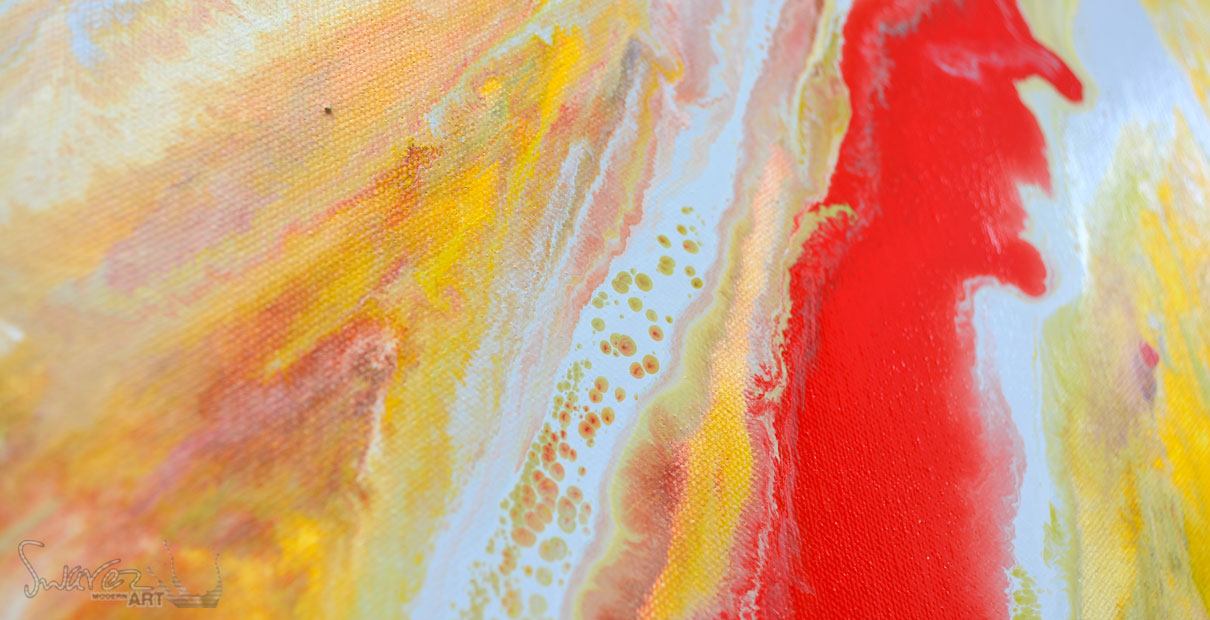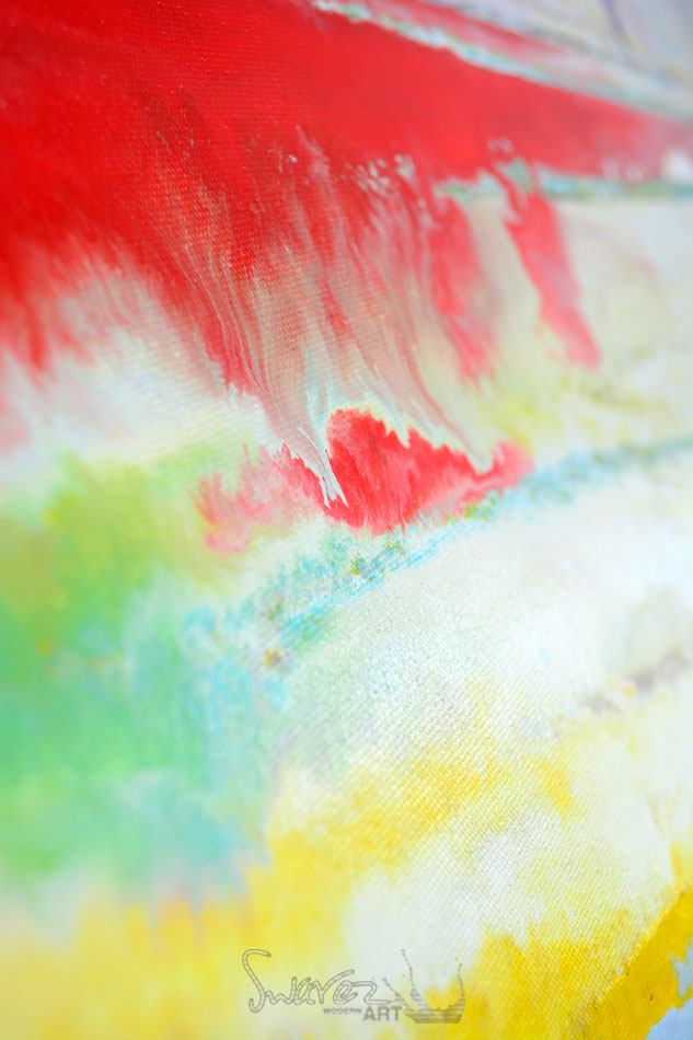 So Collider Scope is a true celebration of this. From a dense centre comes a massive explosion of colour and texture followed on by a surrounding wash of complimentary colours and shapes. It’s already a pretty large painting (200cm in the longest orientation) but the red explosion makes it feel bigger; and the total exclusion of any dark colours means it’s a real life-giver.