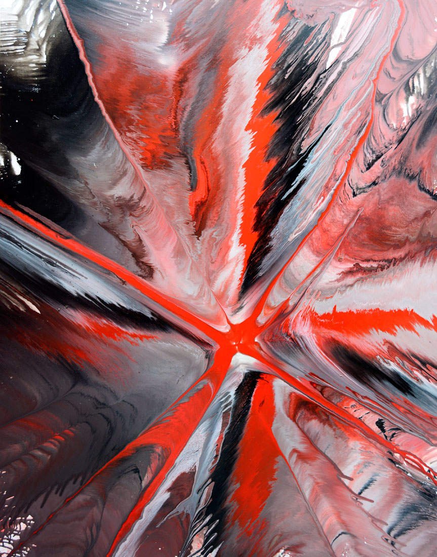 You get the big central red star shape to look at but then as you move in you get colours that pop out at you in abundance; move in closer still and the details of the arcs and layers becomes more evident. I love, love, love this painting. It delivers on a varied and surprising number of levels. I like it when something reveals itself the more time you spend with it. This is the kind of care and attention I place within my work. I think you notice that when it’s done properly.