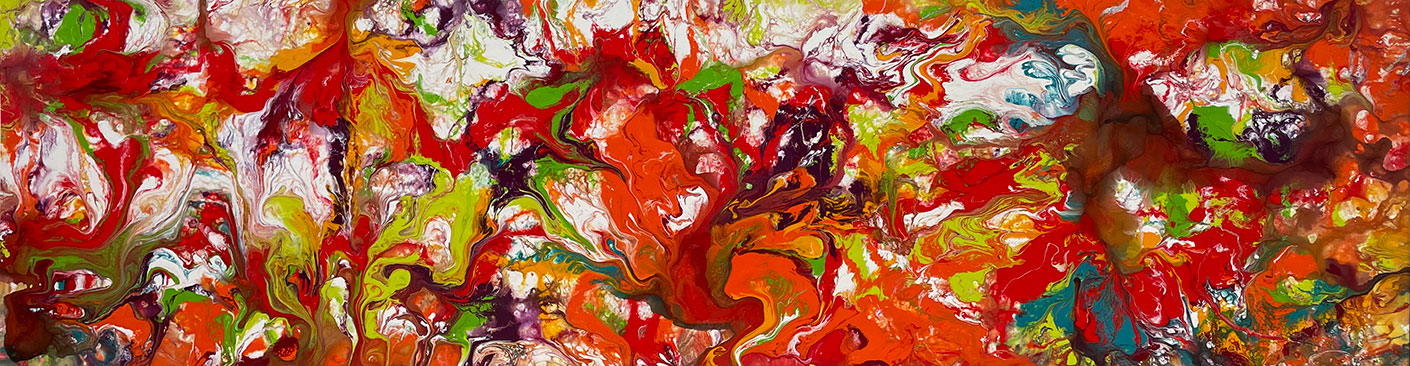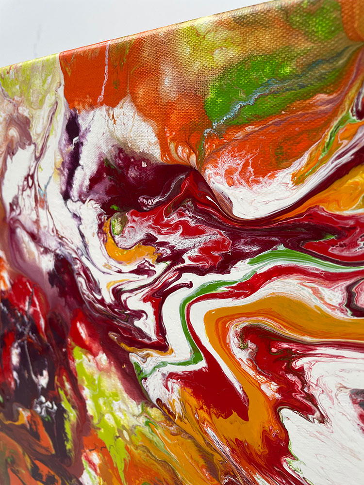 Mirages is a long, rectangular modern art painting that follows a fluid-style of paint manipulation. If you are a fan of all things orange and red (like me) then this painting is really going to hit the sweet spot!