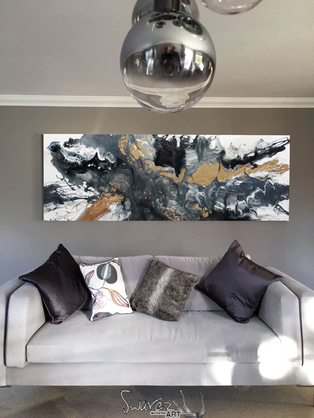 This is a powerful abstract painting. I make no apologies for that. There are no soft tones, no pastel shades and no bright happy colours.